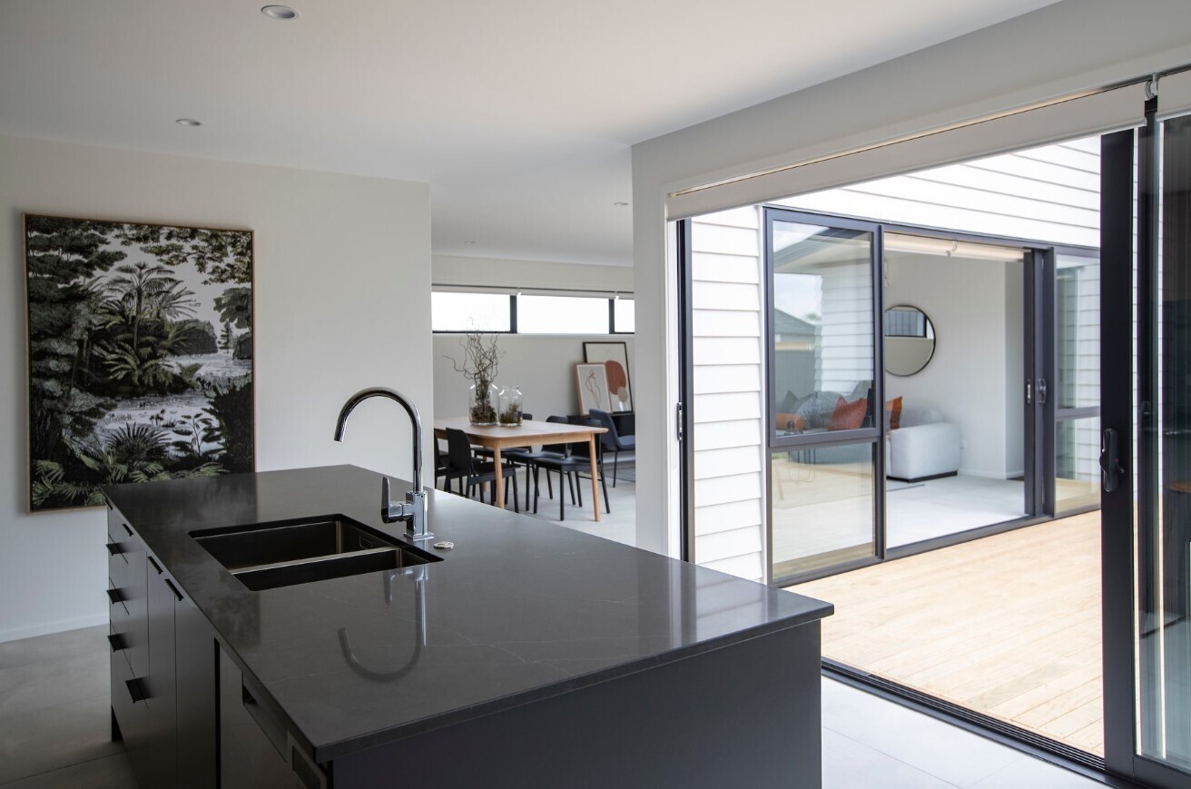 Our Milldale Show Home features our Wainui plan and offers a great modern, open plan layout, with a separate lounge, a study nook and three great sized bedrooms.