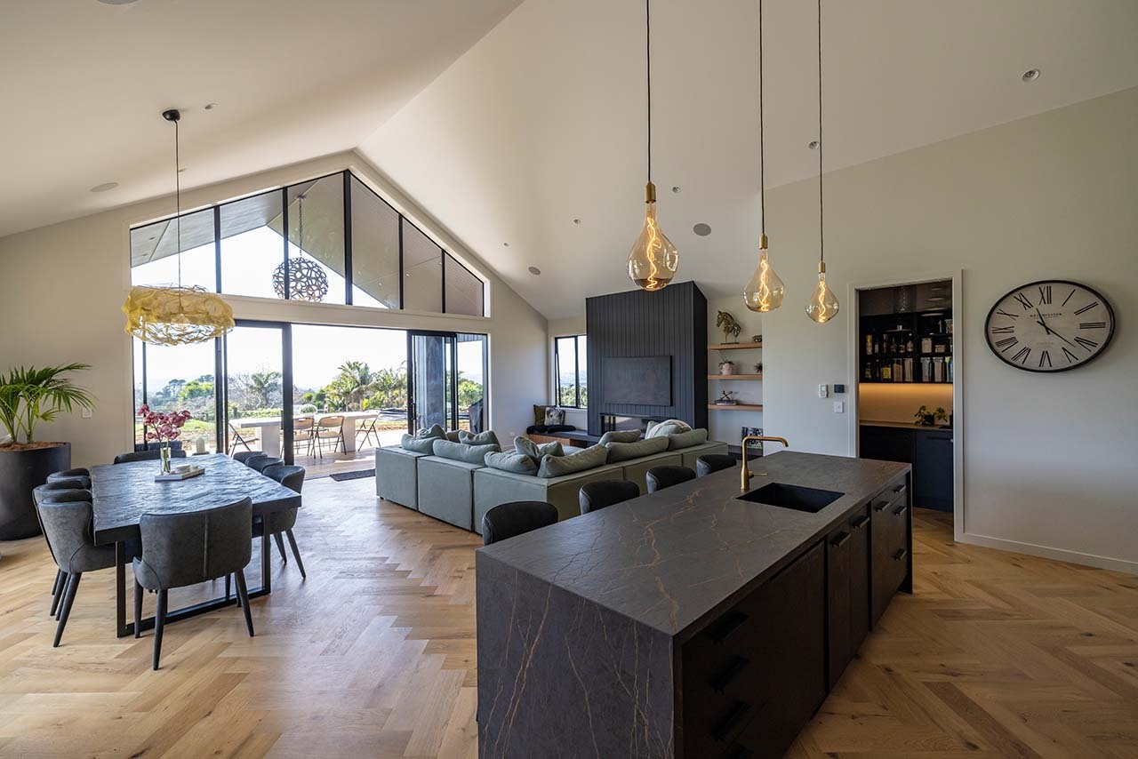 The open plan lounge is my favourite space. We've got a gas fire and a big flat screen and it’s just really nice place. Possibly in summer my favourite will be the al fresco area outside. We've got doors opening all the way through so the indoor-outdoor flow is great.