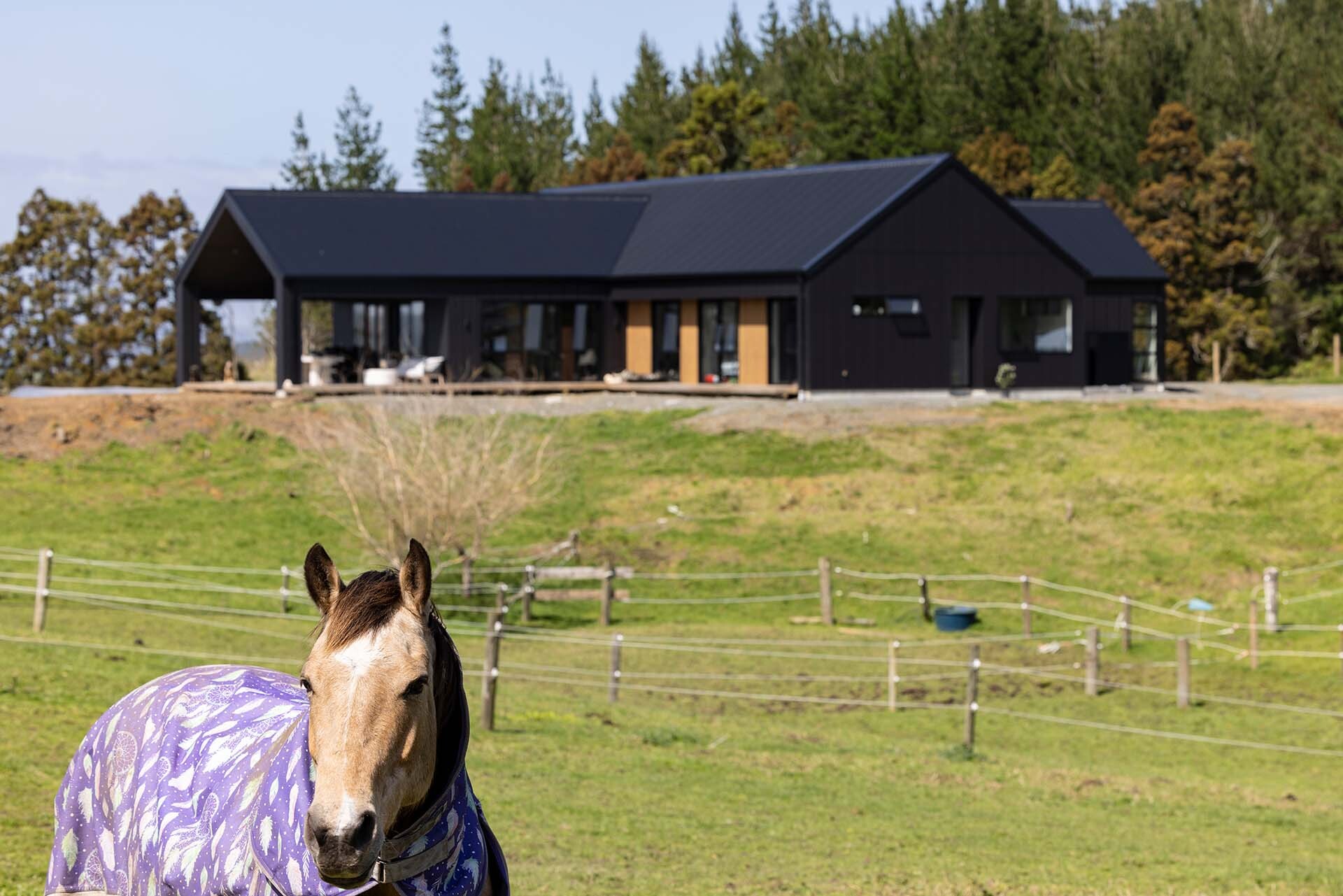 We have built higher on our section and we have a much nicer view looking down on all the horses and you can see the Kaipara in the distance. It’s much nicer where we are now.