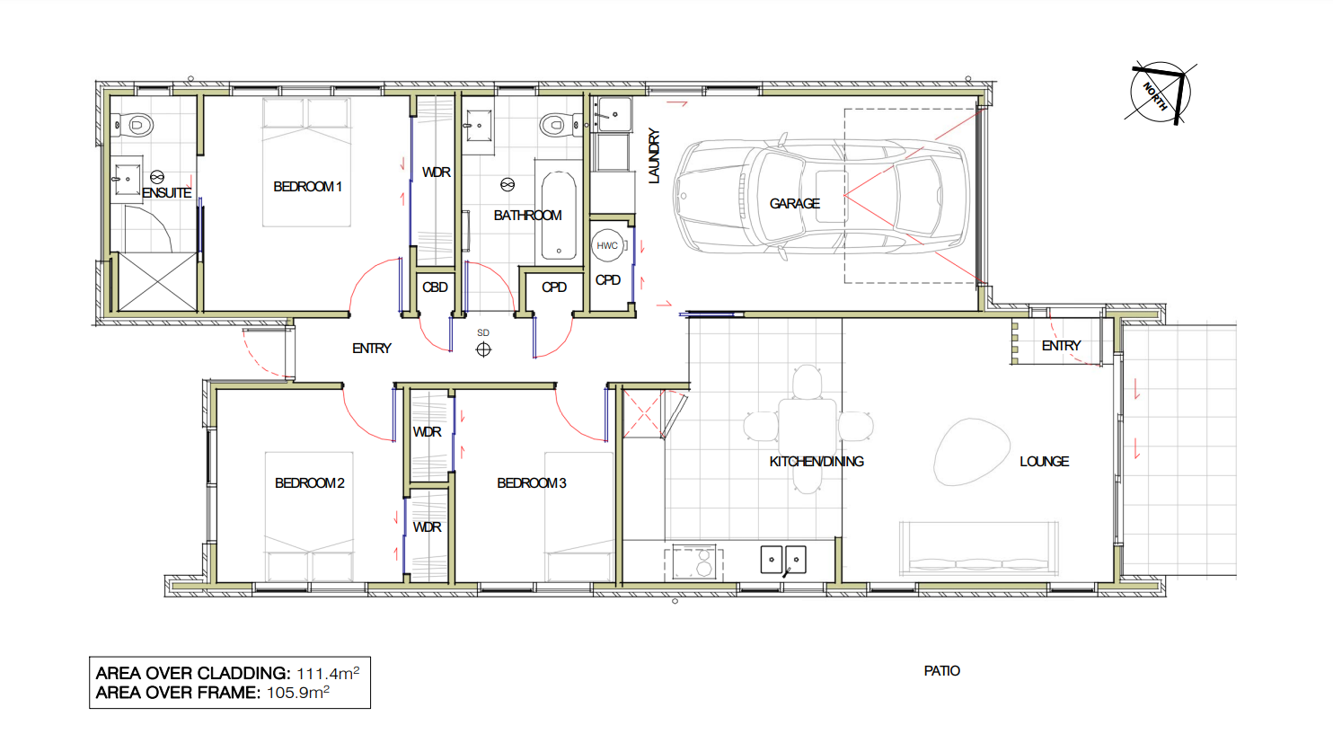 The home features three bedrooms including a master with an ensuite, and open plan kitchen, dining and living.