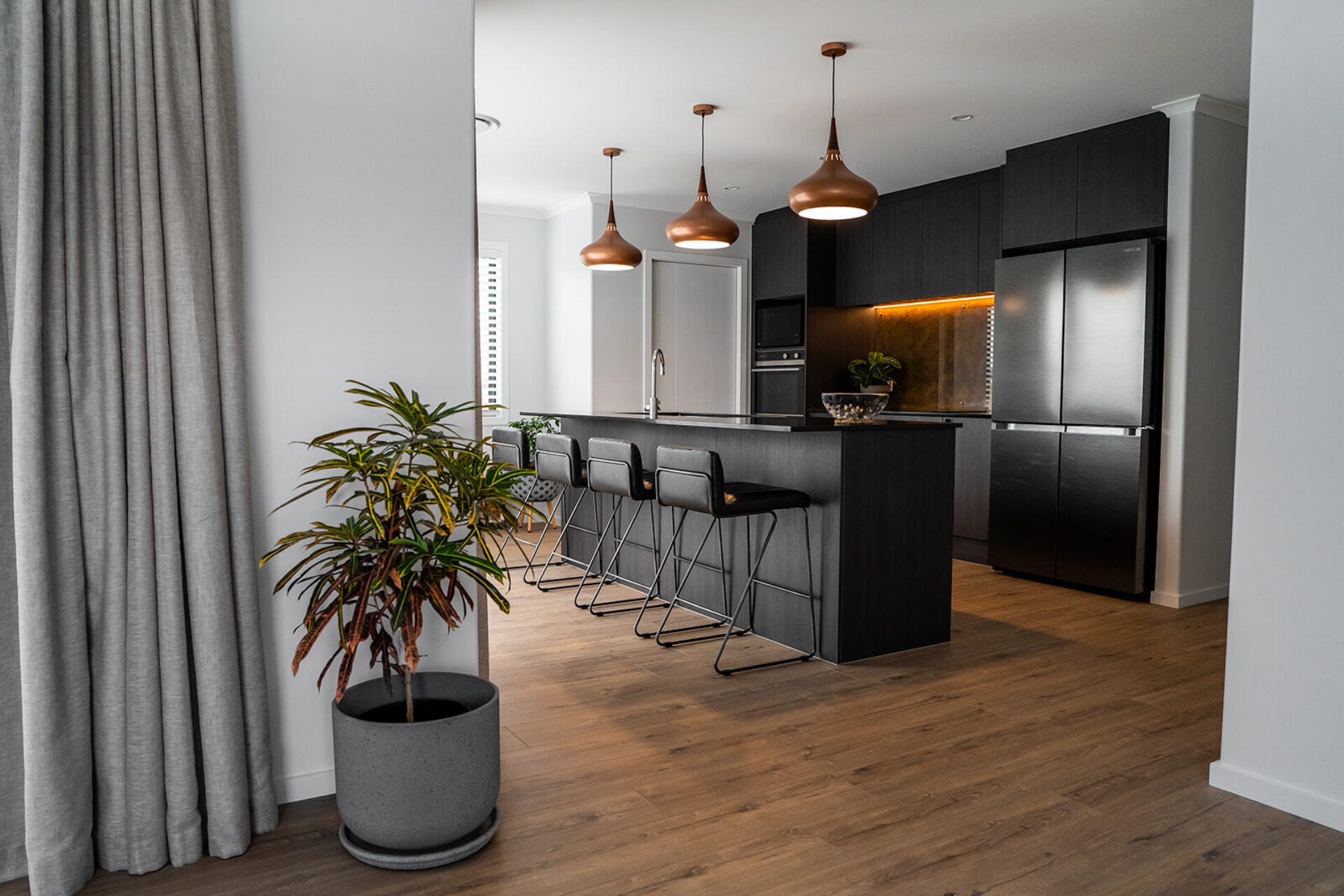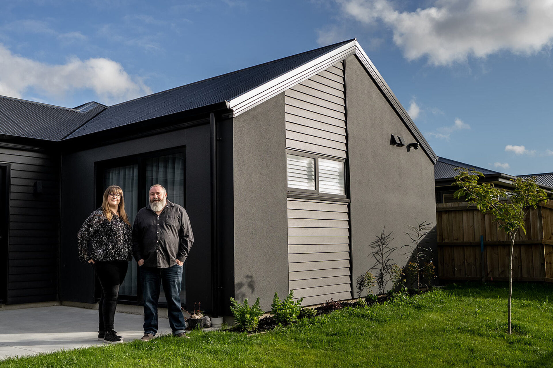 As their lush green landscaping and new lawn takes shape, it offsets the stunning black external features of their Halswell home.