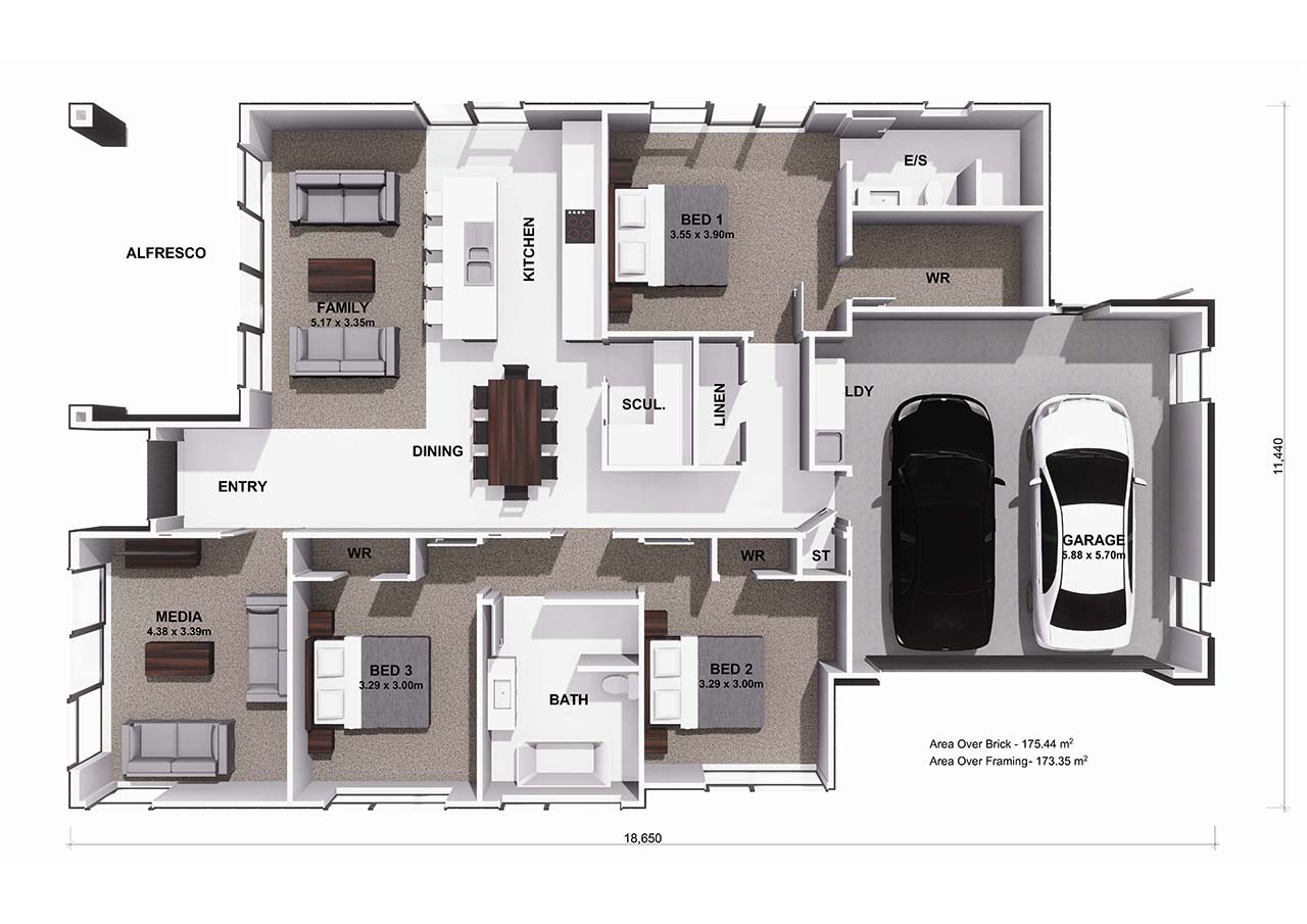 This contemporary, architecturally crafted 3-bedroom home in a pavilion style is strategically designed to harness the sun's energy, creating bright and airy open plan entertaining spaces that seamlessly flow from indoors to outdoors. The Greenhill offers flexible layouts and distinctive features, including an inviting outdoor portico, stunning internal raked ceilings in the living area, and a generous 2.55m stud height throughout. This exceptional home is sure to captivate a diverse range of families.
