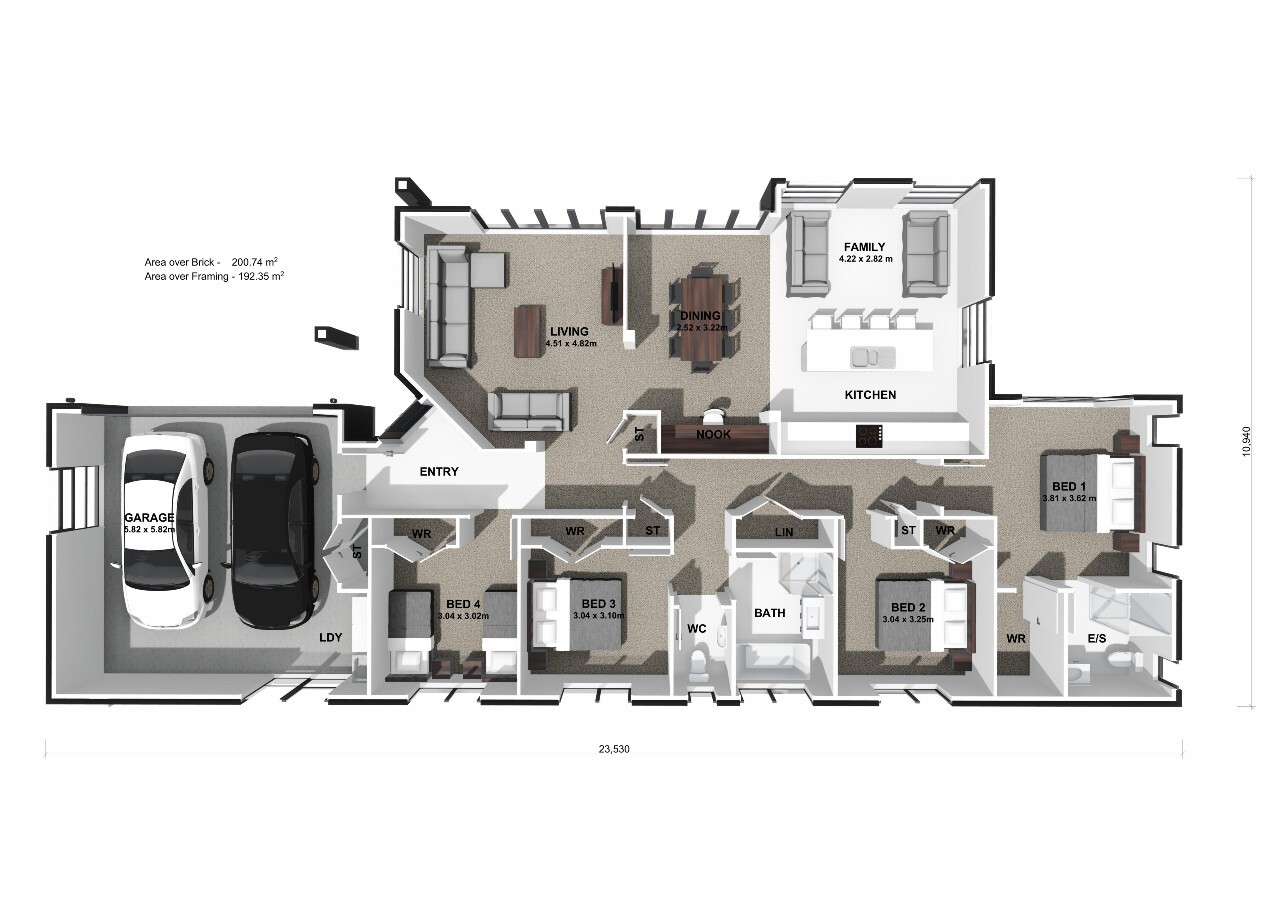 Welcome to the Stirling plan - where modern design meets ultimate relaxation. This exquisite plan boasts four double bedrooms, a spacious living and dining area with a convenient computer nook, a modern galley kitchen with quality appliances, and a spacious lounge room.