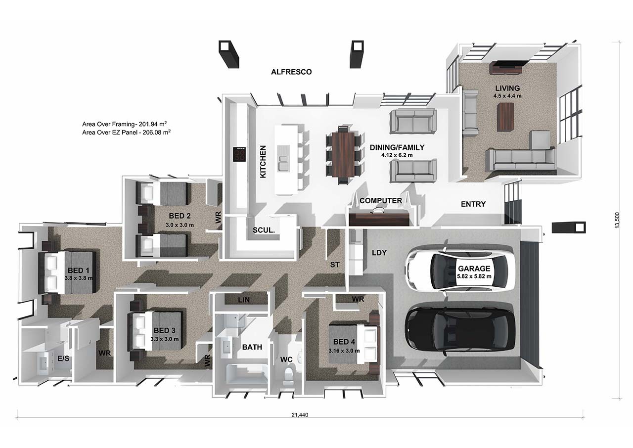 Intended to embrace the warmth of the sun and the beauty of the surroundings, the Sycamore plan offers a delightful blend of indoor and outdoor spaces. It provides a seamless transition between living and sleeping areas while offering ample room for the entire family to enjoy.