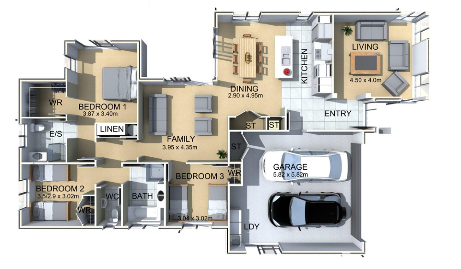 - Double garage with internal access, laundry and extra storage